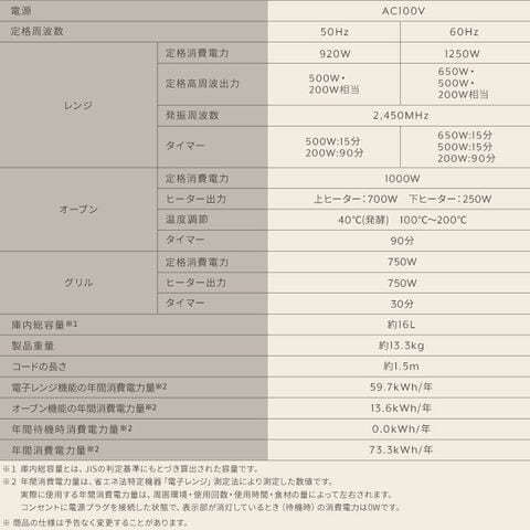 ※3 年間消費電力量は、省エネ法特定機器「電子レンジ」測定法により測定した数値です。