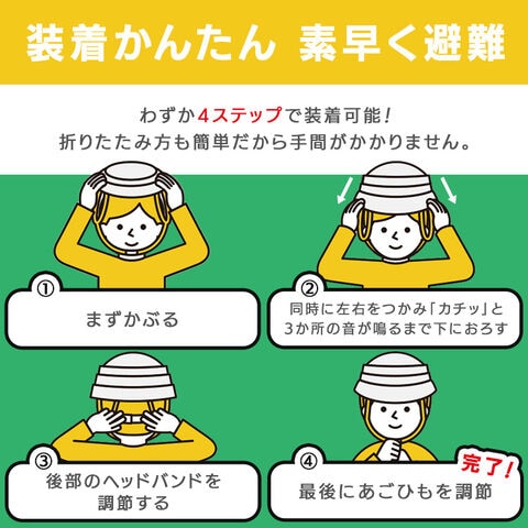 折りたためてコンパクトに収納できる、防災用たためるヘルメットです。