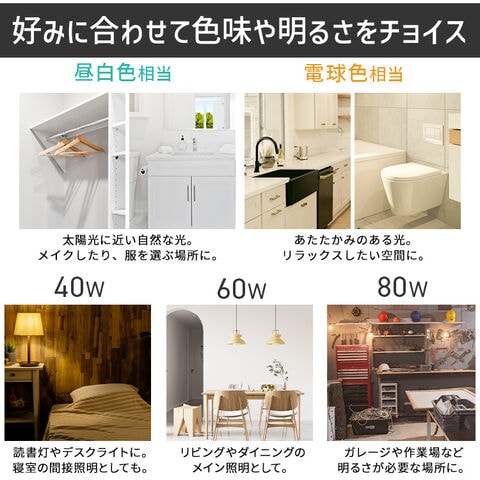 光色は自然光に近い光の色を演出する「昼白色相当」と温かみのある「電球色相当」の2種類です。