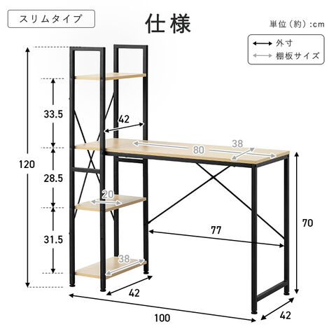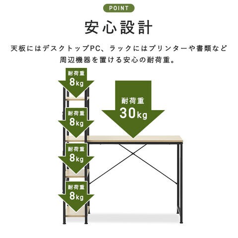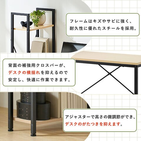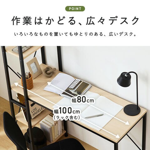 ラック付きデスク RDK-1042R ナチュラル/ブラック
