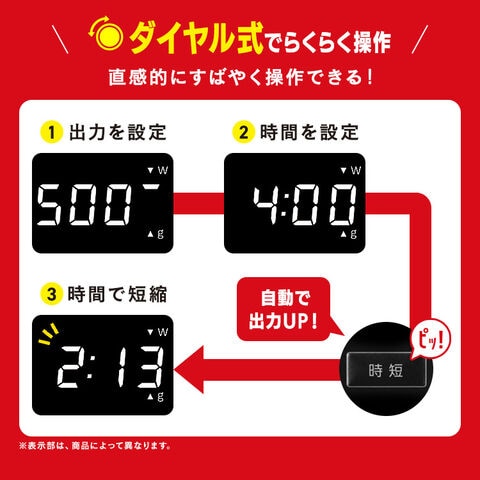 出力と時間をセットして「時短」ボタンを押すだけで、温め時間を短縮。