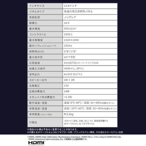 ゲーミングモニター 23.8inch DG-AF2320S-W ホワイト 安心延長保証対象 [家電]