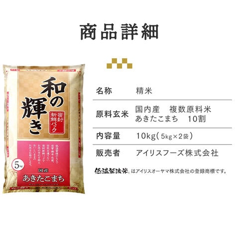 米 10kg 令和 7年産 国産 あきたこまち 白米 お米 10キロ 和の輝き 密封新鮮パック おいしさ長持ち 低温製法米 アイリスオーヤマ アイリスフーズ *