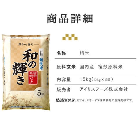 [令和7年産使用]無洗米 和の輝き ブレンド米 15kg 密封新鮮パック 脱酸素剤入り 米 お米 低温製法米 アイリスオーヤマ [食品]