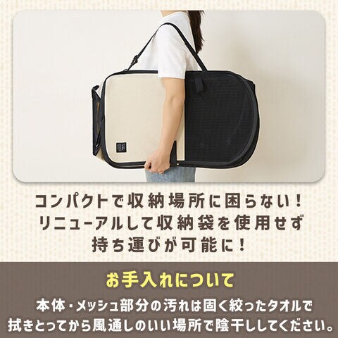 天面メッシュ・底面マットが取り外し可能です。天面はメッシュ生地になっているので、ペットの様子が見えて安心です。