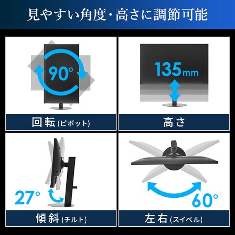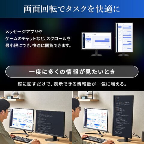 必要に応じてディスプレイを90°回転させることができるピボット機能搭載。