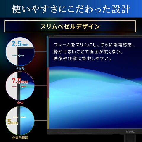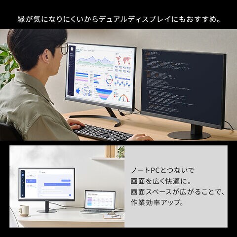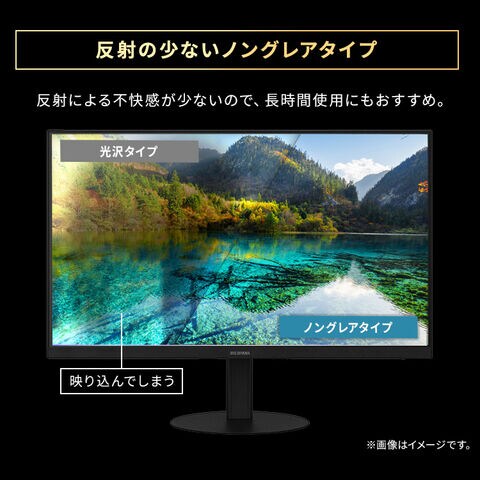 映り込みや光の反射などがないノングレアタイプ(非光沢)で、反射による不快感が少ないので長時間の作業におすすめ。