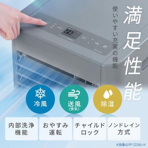 スポットクーラー 家庭用 スポットエアコン アイリスオーヤマ ポータブルクーラー ポータブルエアコン 4.5~7畳対応 工事不要 冷風 送風 除湿 梅雨対策 取り付け簡単 窓パネル付き エアウィル airwill IPP-2226U IPP-2226S * ホワイト [家電]