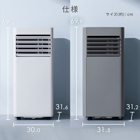 取付工事が不要で、エアコン配管穴が無く設置が難しい場所(キッチンやガレージなど)に、誰でも簡単に設置できる移動式エアコンです。