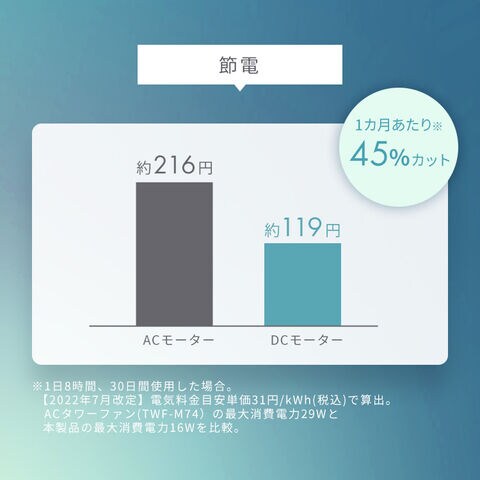 DCモーター搭載で、省エネかつパワフルを実現!室温に合わせた風量自動調節が可能になったタワーファンです。