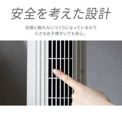 羽根に触れない安心構造!安全に配慮して、羽根に触れないつくりになっています。