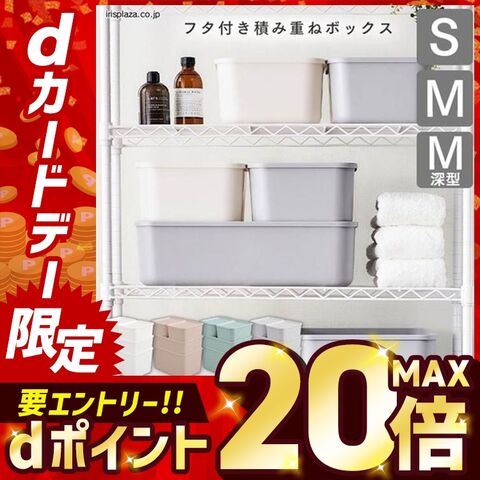 【4個セット】フタ付き積み重ねBOX Mサイズ深型×2+Sサイズ×2 ホワイト