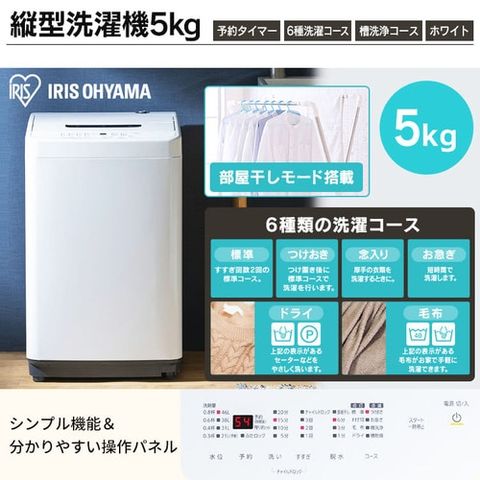 【全自動洗濯機 5.0kg IAW-T504 ホワイト】