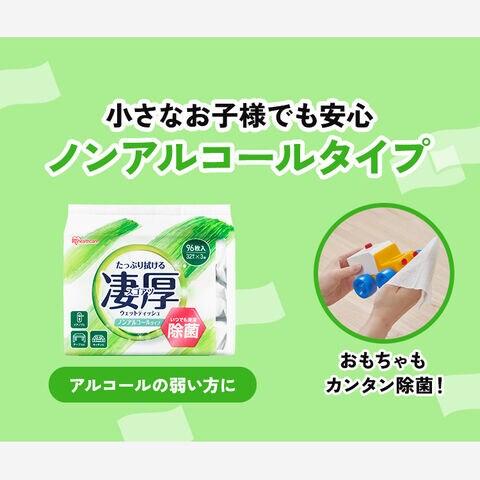 [凄厚] ウェットティッシュ 除菌シート ノンアルコール 大判 厚手 ウエットティッシュ 96枚 (32枚入×3パック) 携帯用 除菌 厚め セット 乾きにくい 持ち運び まとめ買い キャンプ アウトドア アイリスオーヤマ WTP-32N3P [日用品] [iris]
