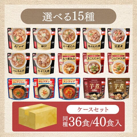 野菜(じゃが芋、人参、玉ねぎ)こんにゃく、豚肉、醤油(小麦・大豆を含む)、砂糖・ぶどう糖果糖液糖、みりん、清酒、かつお節エキス、食塩/調味料(アミノ酸等)、酸化防止剤(ビタミンC)、水