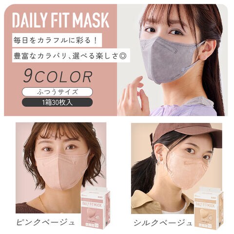 【90枚】カラーマスク ふつうサイズ 30枚×3 DAILY FIT MASK ピンクベージュ