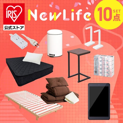 \寝室10点セット/ ベッド シングル マットレス 布団セット タブレット 本体 サイドテーブル ゴミ箱 ティッシュ ソフトパック アイリスオーヤマ * & 新生活 [sinseiikatu] [家電]