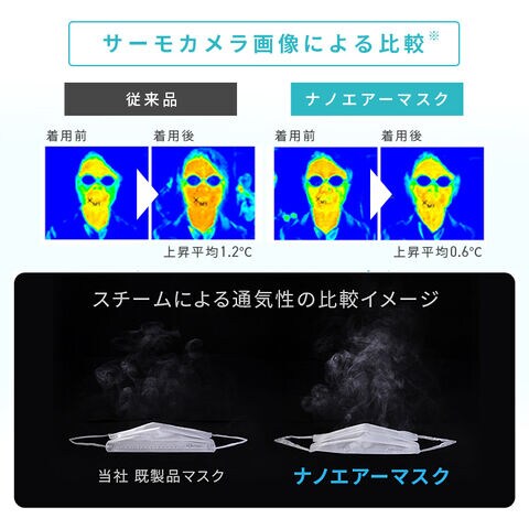 特殊ナノファイバー加工の中間層が着用時の口元温度上昇を緩和し、蒸れによる不快感を軽減します。