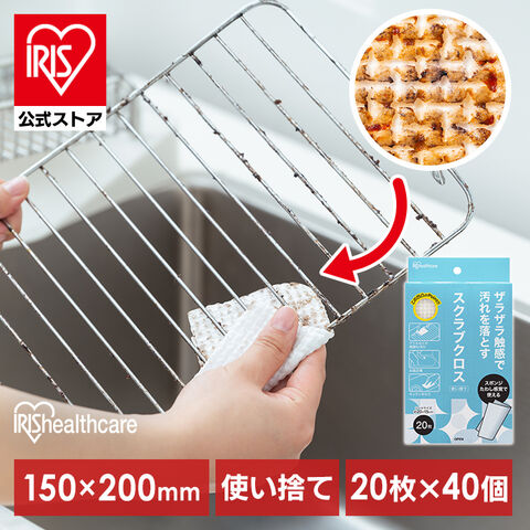 【40個】 スポンジ 使い捨て スクラブクロス 800枚 まとめ買い 頑固な汚れ 掃除 コンロ グリル アウトドア バーベキュー 風呂 シートたわし スクラブペーパー スクラブシート ボックス アイリスオーヤマ SC-B20W *