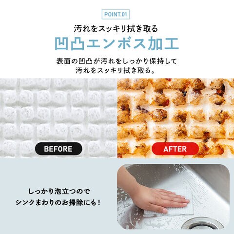 表面の凹凸が、拭き取った汚れをしっかり保持。
