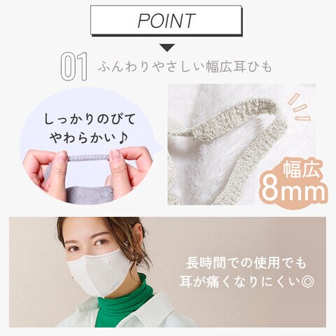 ・ふんわりやさしい幅広耳ひも、幅広8mm。