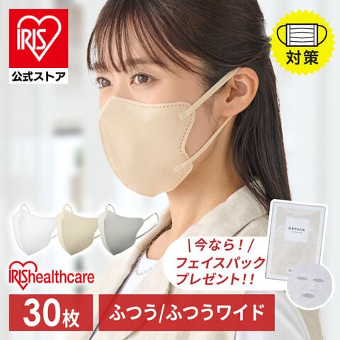 \30・60枚セット★フェイスパック付き!/FASHIONABLE MASK 立体 ふつうサイズ 30枚 RN-FA30SXQ ペールベージュ