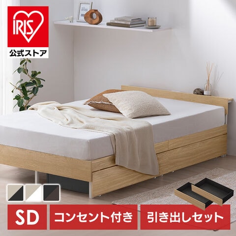 ウッドスチールベッド セミダブル 宮付き 引き出しセット