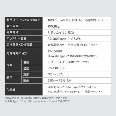 USB Type-C(TM)-USB Type-C(TM)ケーブル×1、かんたん操作ガイド(保証書付き)×1、防塵キャップ×1