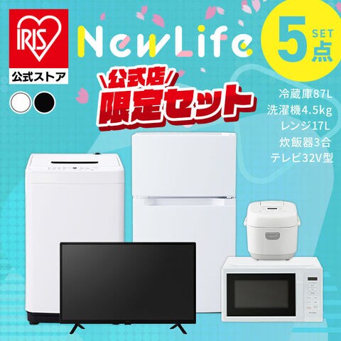 家電セット 5点セット 冷蔵庫 87L 洗濯機 5kg 電子レンジ 炊飯器 3合 液晶テレビ テレビ アイリスオーヤマ 新生活 安心延長保証対象 ホワイト