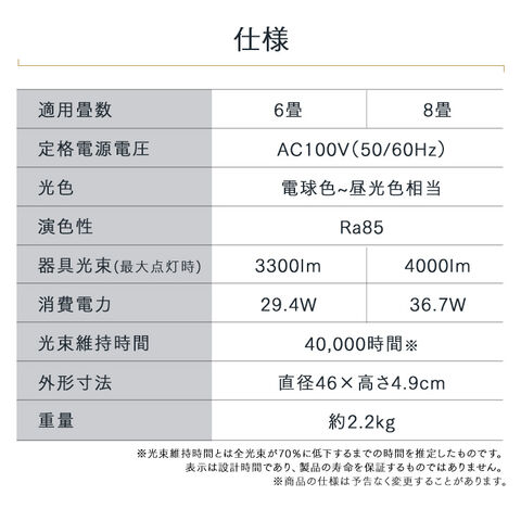 (※寿命は光束が70%に低下するまで時間です。表示は設計寿命であり、製品の寿命を保証するものではありません。)