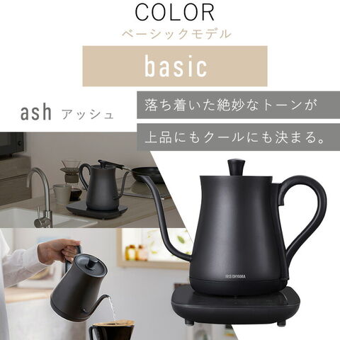 電気ケトル ケトル 0.8L ハイグレードモデル IKE-C800T 電気 電気ポット 温度調節 湯沸かし 保温 内側 ステンレス おしゃれ 細口 湯漏れ防止 空焚き防止 一人暮らし アイリスオーヤマ チャコール [家電]