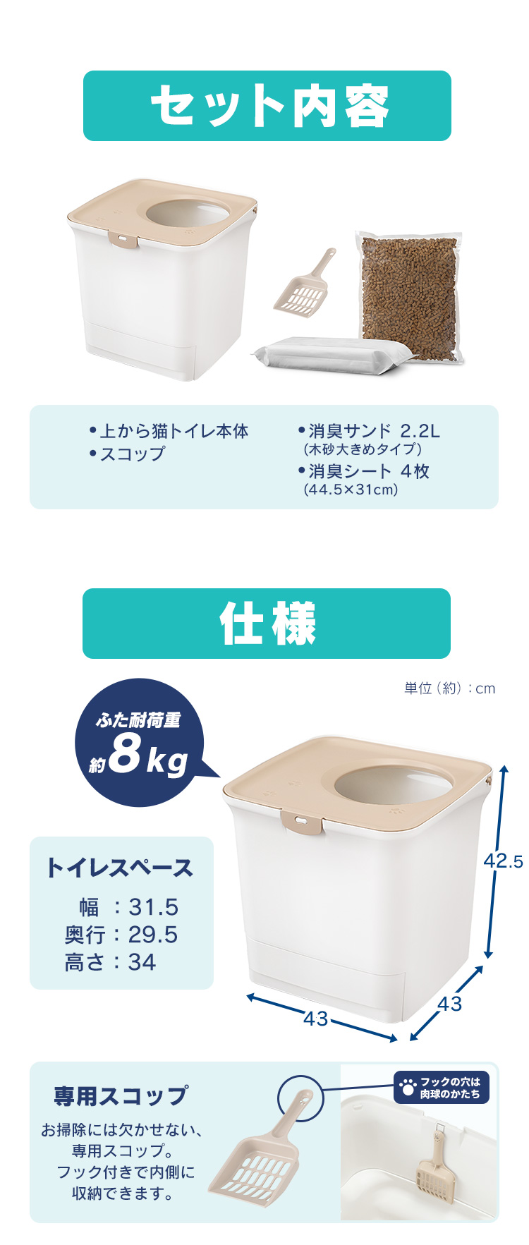 <本体・ふた・スコップ・引き出しトレー・スノコ>