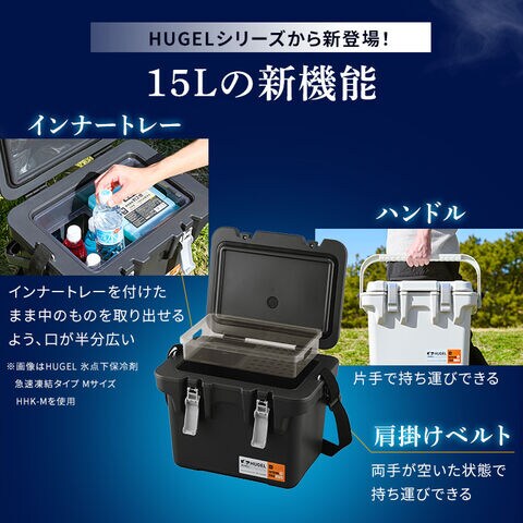 クーラーボックス 小型 釣り 15L 真空断熱 保冷力 氷点下保冷剤 選べる保冷剤付きセット 急速凍結タイプ 超低温タイプ トレー付 持ち手 肩掛け 部活 キャンプ ヒューゲル HUGEL アイリスオーヤマ VITC-15 [アウトドア]