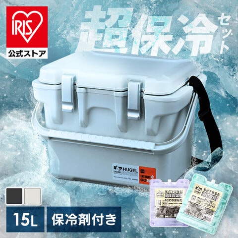 クーラーボックス 小型 釣り 15L 真空断熱 保冷力 氷点下保冷剤 選べる保冷剤付きセット 急速凍結タイプ 超低温タイプ トレー付 持ち手 肩掛け 部活 キャンプ ヒューゲル HUGEL アイリスオーヤマ VITC-15 [アウトドア]