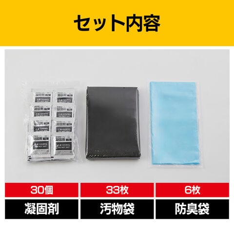 30回分:凝固剤×30、汚物袋×33、防臭袋×6
