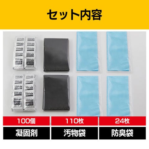100回分:凝固剤×100、汚物袋×110、防臭袋×24