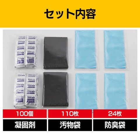 100回分:凝固剤×100、汚物袋×110、防臭袋×24
