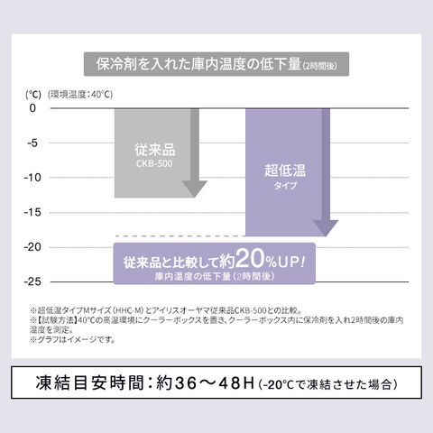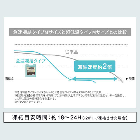 ・急速凍結タイプ:-10℃の保冷力/超低温タイプと比較して凍結速度が約2倍!短い冷凍時間で使用可能!