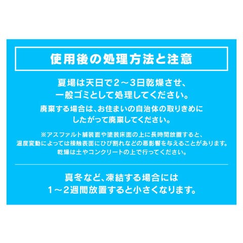 ※使用後は天日で2~3日乾燥させれば、一般ゴミとして処理できます。処理方法は各自治体のルールをご確認の上、従ってください。