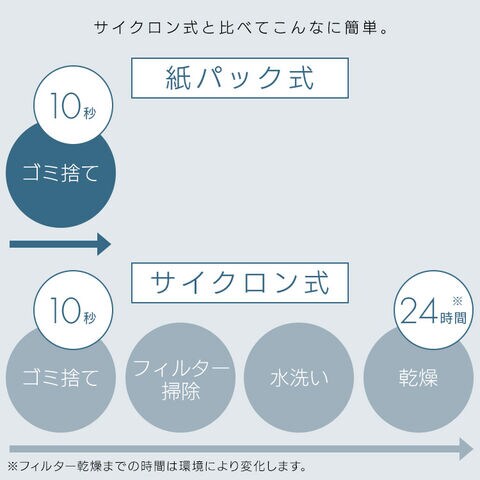 本体に直接ゴミが溜まらず、紙パックがガードしてくれるので、大きいゴミを吸い込んでも本体がダメージを受けにくい。