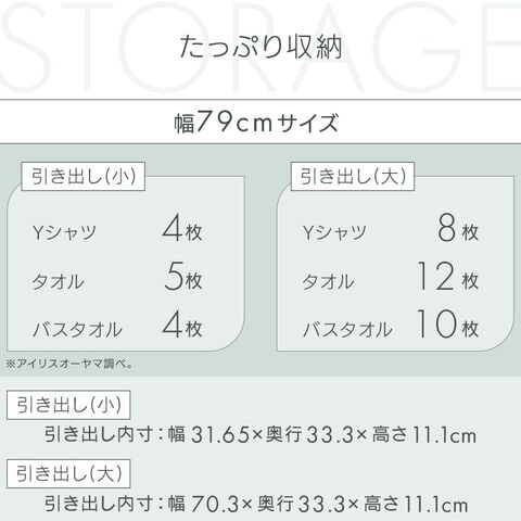 引き出し(大)内寸:幅約70.3×奥行約33.3×高さ約11.1