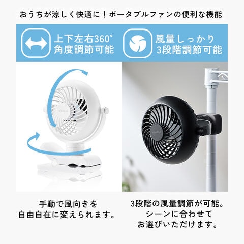 ポータブルファン クリップ式 PF-C2501-B ブラック 安心延長保証対象