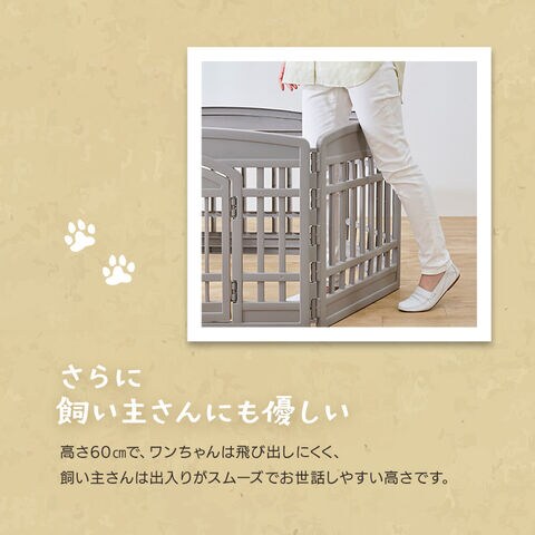 高さ60cmで、ワンちゃんは飛び出しにくく、飼い主さんは出入りがスムーズでお世話しやすい高さです。
