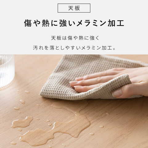 天板は傷や熱に強く、汚れを落としやすいメラニン加工。