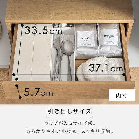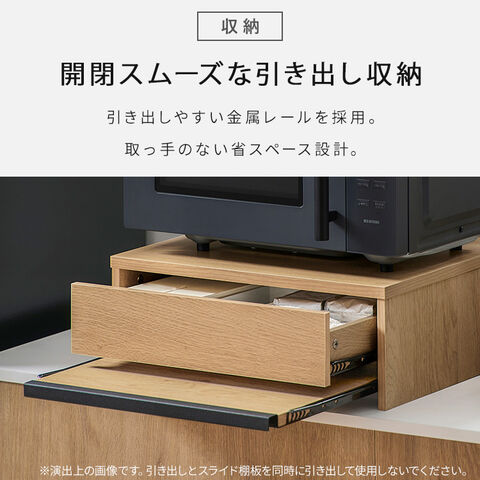 引き出しとスライド棚板は取り外し可能で、お手入れしやすい。