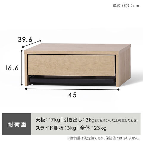 スライド棚板:約3kg(天板に2kg以上荷重したとき)