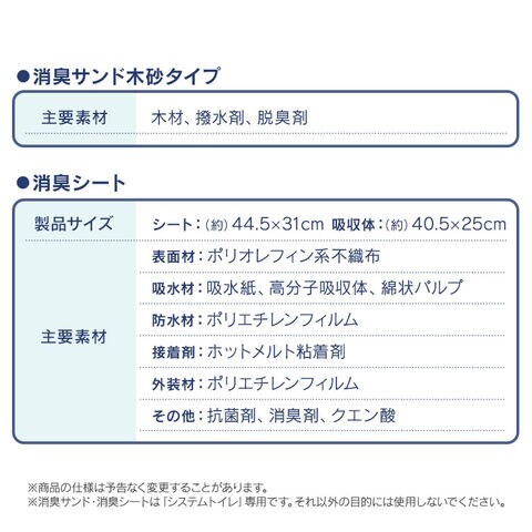 ※消臭サンド・消臭シートは「システムトイレ」専用です。それ以外の目的には使用しないでください。