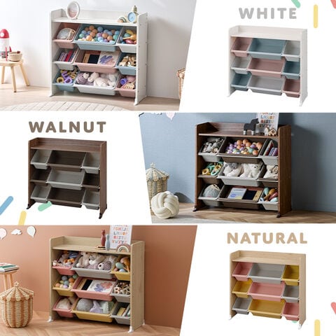 色分けされていることで「どこに何を片付ける」のルールが決めやすく、お子様の自立心をサポートし楽しくお片付けができる収納用品です。