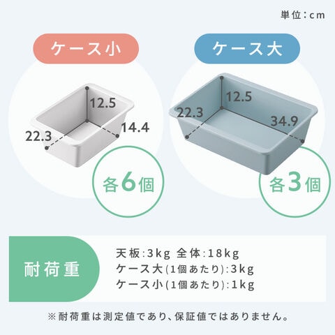 ボックスは2,3色、大×3 小×6で分けられているため、大きいものから細かいものまで片付けでき