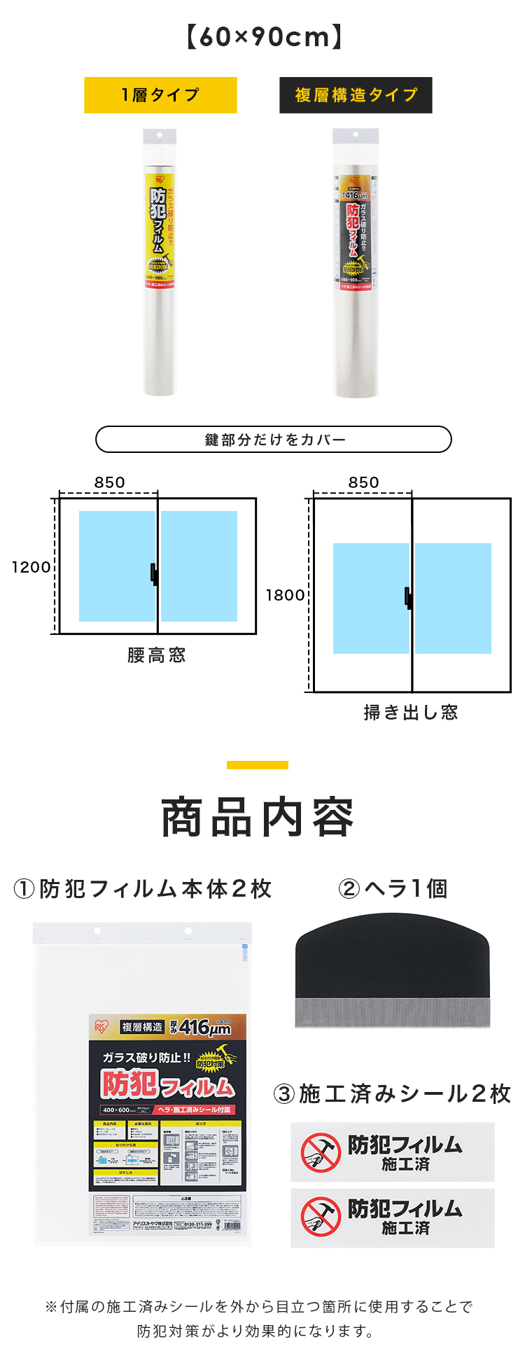 防犯フィルム×2、ヘラ×1、防犯シール×2